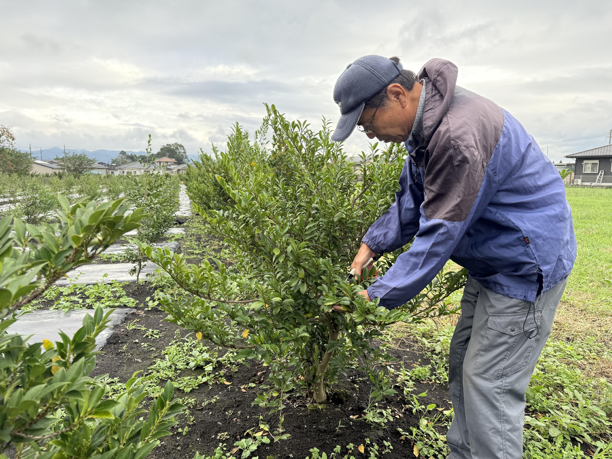 鹿児島県では、この枝物の生産量が全国第2位(農水省2020年)を占め、関西地域を中心に関東、九州地域等幅広く販売されております。ただ、全国の枝物市場は90%が中国産であり、国内産はわずか10%のみの販売量にすぎません。